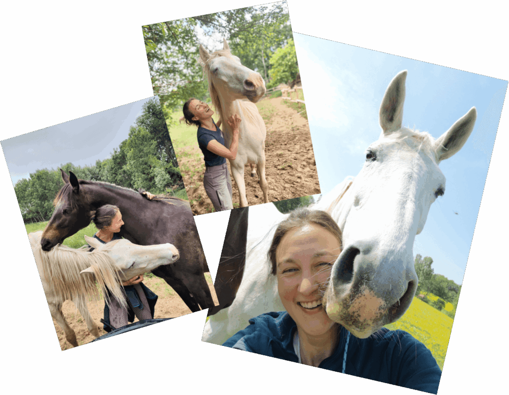 Je me suis formée durant des années en « éthologie », anatomie, physiologie et biomécanique du cheval, podologie et parage physiologique, système digestif et nutrition du cheval et je suis actuellement en dernière année de formation pour devenir shiatsushi équin. J’ai eu la chance de pouvoir suivre tous ces enseignements qui me permettent d’avoir un regard et une approche pluridisciplinaire. Je pense que tout le monde n’a pas cette opportunité ni le temps à accorder pour réaliser toutes ces formations et surtout, je crois qu’il n’est pas nécessaire d’être un expert dans tous ces domaines pour devenir soi-même acteur du mieux-être de son partenaire.